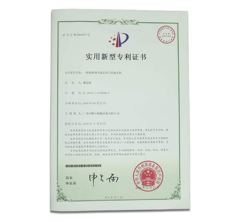 騰卓機械專利生產證書,專業制造包裝設備的生產廠家,全自動及半自動的洗瓶機,烘干機,灌裝機,旋蓋機,貼標機,套標機,打碼機等非標定制自動化包裝生產線
