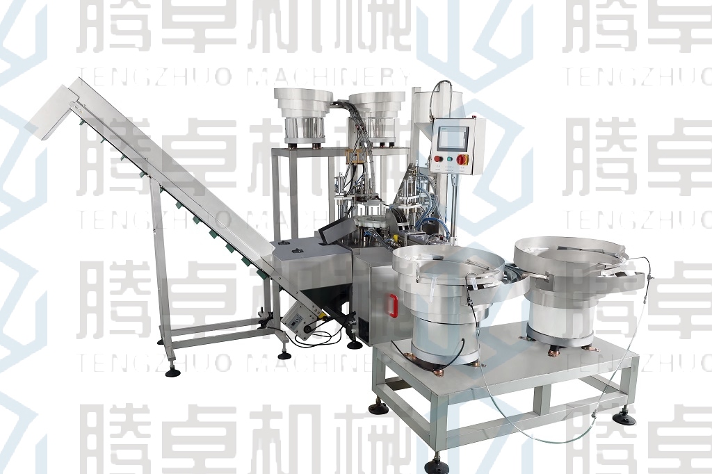自動灌裝軋蓋機一體機可用于西林瓶、精油瓶、香水瓶全自動灌裝旋蓋及鎖蓋設備。整套流程分為:理瓶-灌裝-壓塞-掛蓋-軋蓋,其特點為生產穩定,對包材通用性強。