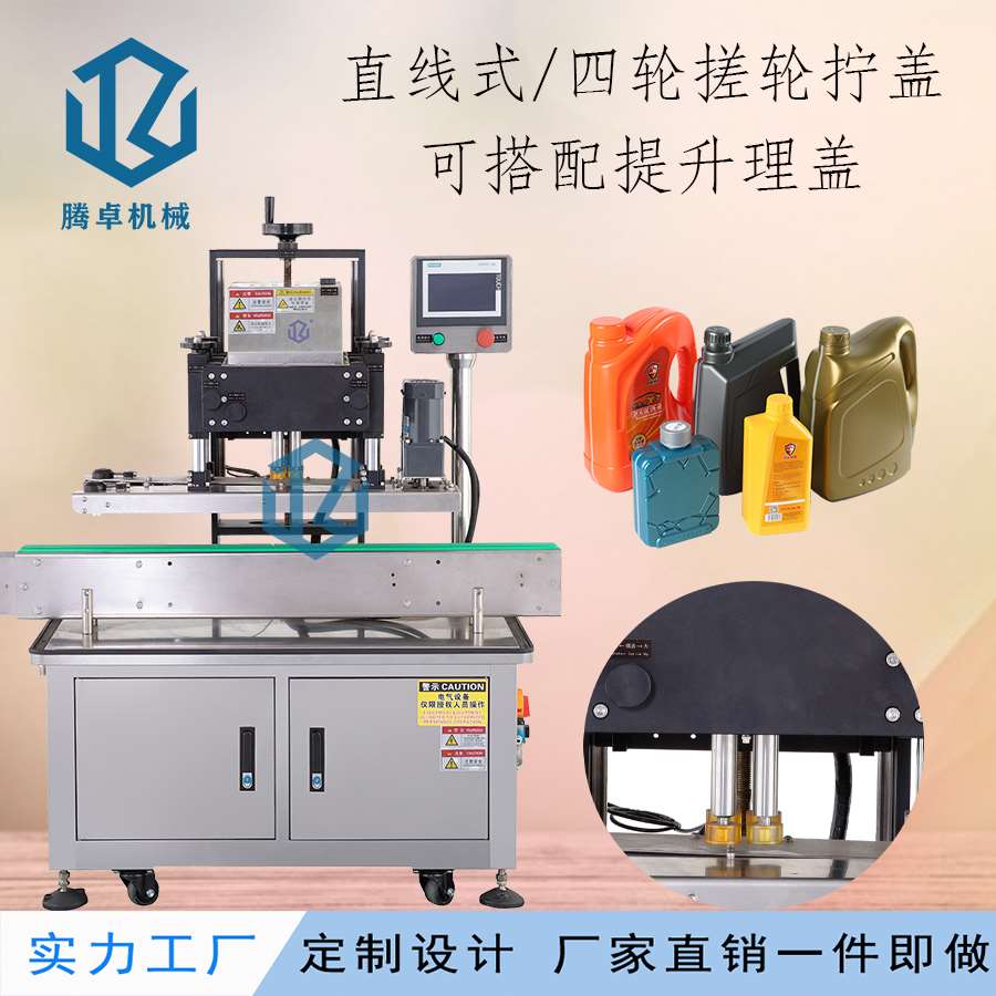 本機主要適用于螺絲紋平頭塑料蓋旋蓋擰緊,例:潤滑油桶、礦泉水瓶、藥瓶、日化用品、飲料瓶等。調節簡單,使用方便。可兼容多種瓶子蓋子。